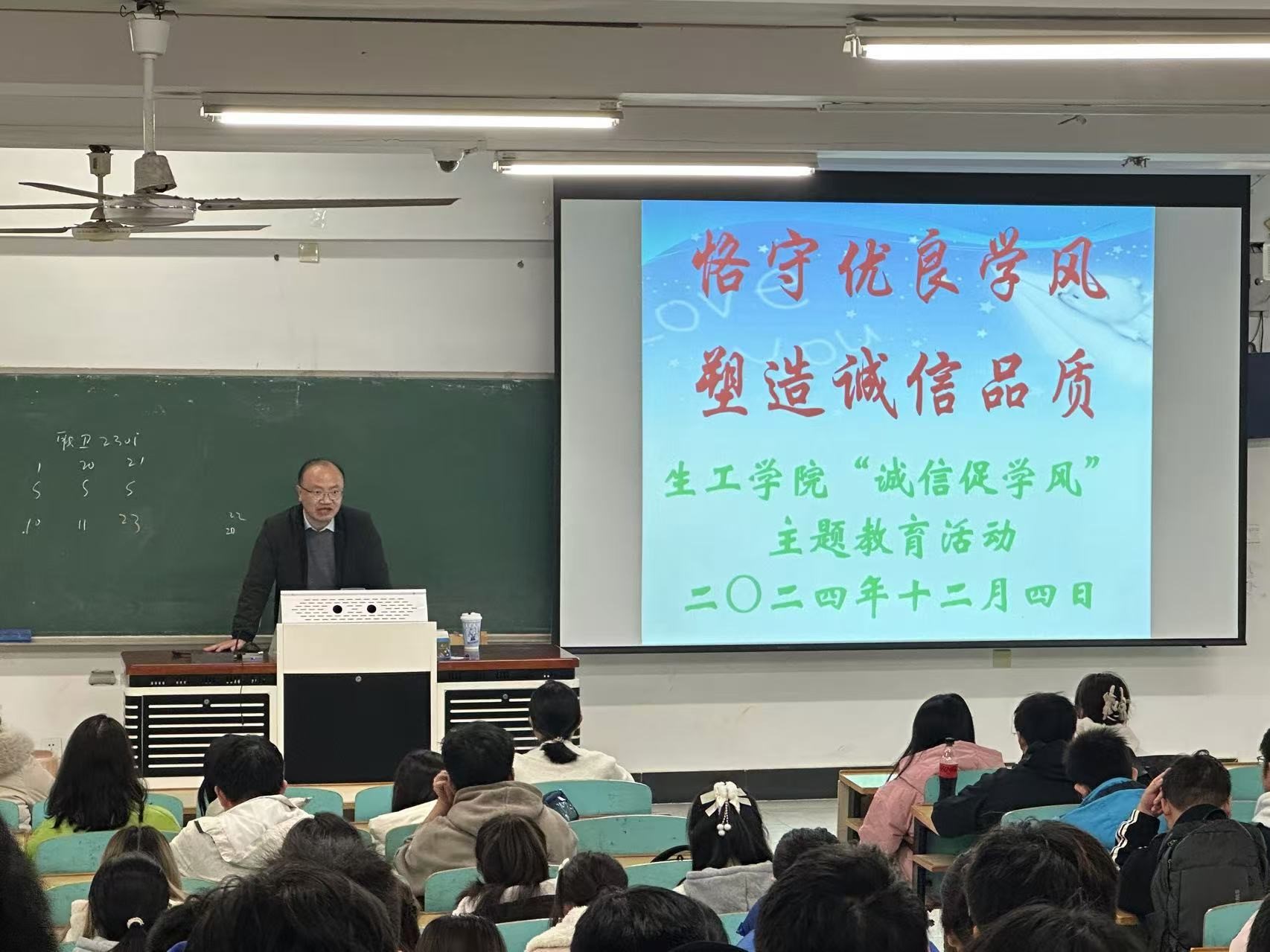 “诚,信也。信,诚也。”为深入践行社会主义核心价值观,传承中华民族优秀传统美德,践行“忠 诚 精 实”欧阳平凯精神,全面实现高质量人才培养目标,beat365亚洲体育官方网站在12月4日晚,于厚学楼309开展了诚信主题教育。主题报告由公司党委副书记、纪委书记徐元龙主讲,2024级辅导员朱皓、苏少丽以及2024级全体员工参加。