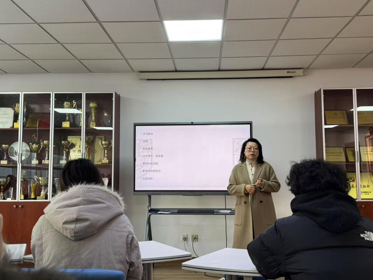 主题班会上,学办主任、2024级辅导员朱皓老师围绕学风建设、安全教育、行为考评、奖学金、寒假社会实践等方面就如何开展好班级工作与同学们做了交流,对近期重点工作进行了布置,总结了班级建设的核心要素,包括强化角色定位、加强班级管理、形成班级特色等方面,端正了员工的集体学风,注重奖助、身心健康、学业学风建设等日常管理以及发展性支持。