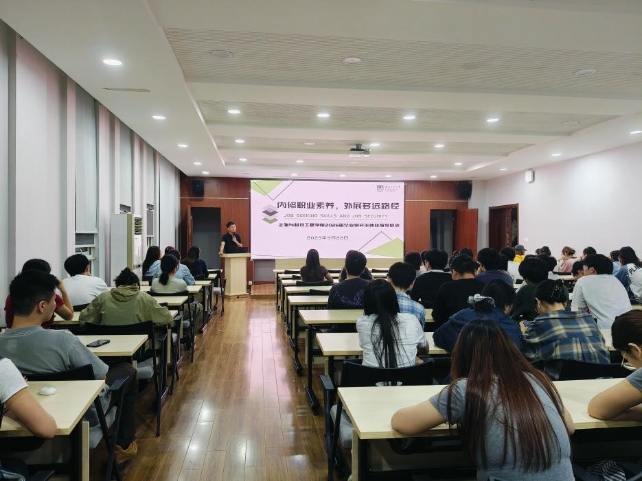 为进一步促进研究生求职意识,提升求职竞争力,9月19日-22日,生工学科群“研途有梦,勇往职前”2026届毕业生就业指导系列讲座于尚德楼A楼报告厅开展。讲座由公司党委副书记兼纪委书记徐元龙、辅导员吴雪、张健和食品公司教师黄巍巍担任主讲人,全体2026届毕业生分别以线下和线上形式参加活动。