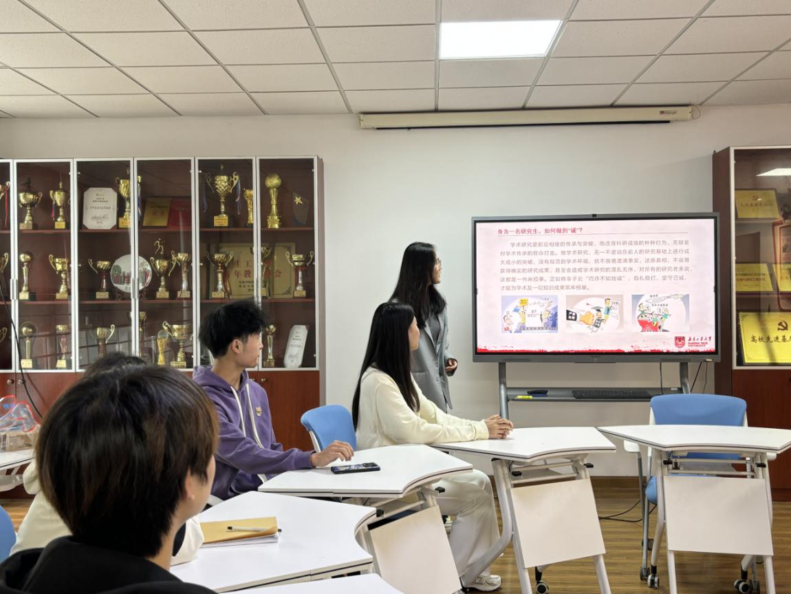 活动最后,全体同学通过线上线下结合方式共同进行了科研诚信宣誓,表达了对学术诚信的承诺和追求。本次活动旨在加强学术诚信教育,鼓励科研创新。通过活动不仅加深了研究生对科学家精神的理解,也激发了同学们的科技探索热情,为履行科技强国使命奠定坚实基础。