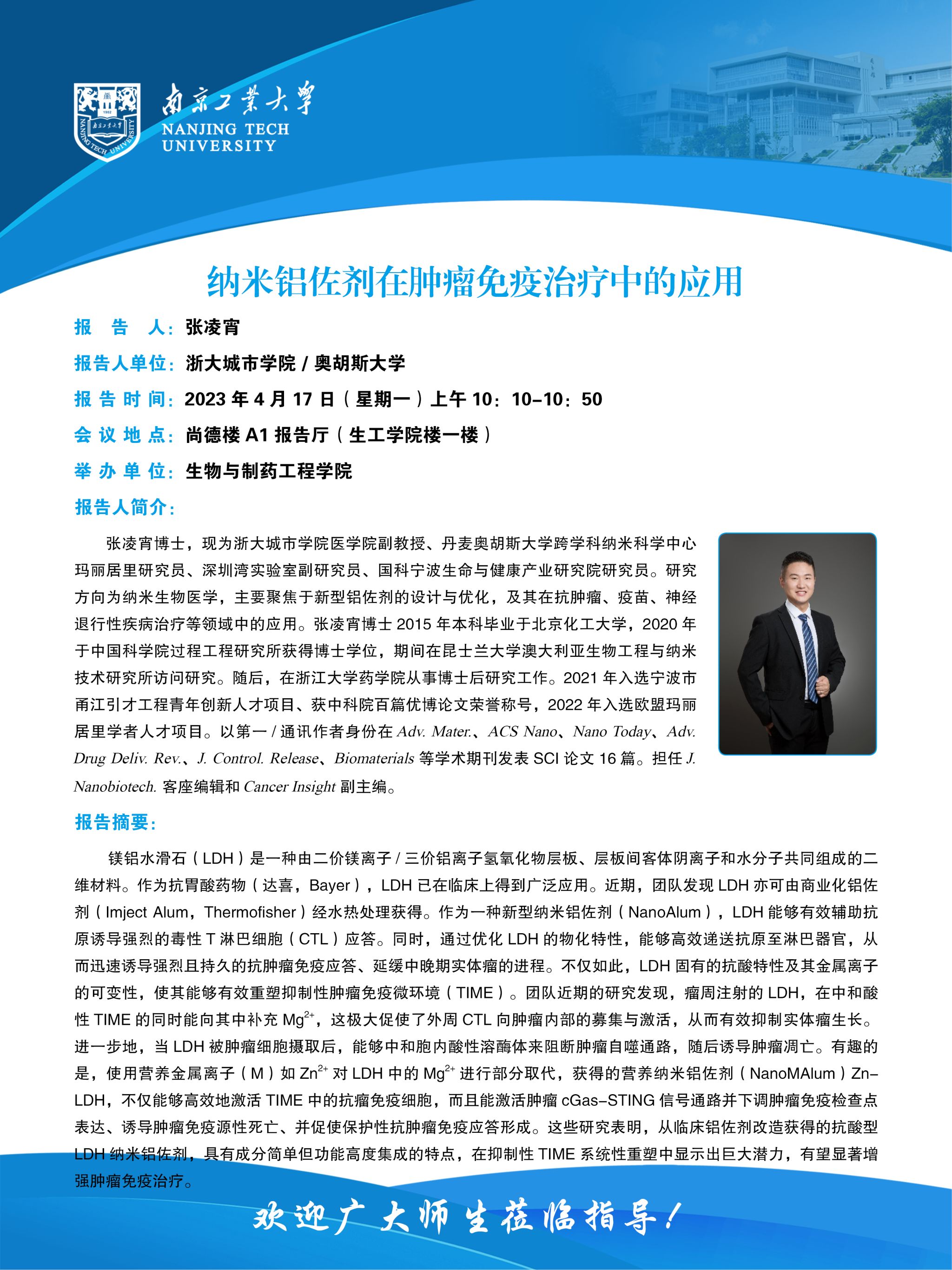 报告题目:纳米铝佐剂在肿瘤免疫治疗中的应用