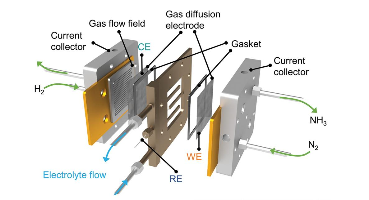 锂介导氨的电合成使用清洁电能推动氮气还原制备氨,该方法一般具有更高的转化效率、法拉第效率、能量效率等,因此受到了科学界的广泛关注。然而,依旧存在几个重大挑战,包括釜式设备具有较低的传质效率,导致能量效率与法拉第效率依旧偏低;牺牲溶剂的使用无法持续提供质子;电解质易分解、聚合,无法实现稳定的连续生产。丹麦科技大学Ib Chorkendorff教授设计了一种三明治式连续电合成反应器、铂-金合金催化剂、链状醚类电解液,基于以上反应系统,成功将氮气还原与氢气氧化耦合,规避了牺牲质子的使用,实现氨的连续稳定制备。氨的连续电合成体系在稳定运行300 h后,以约64 %的法拉第效率、17 %的能量效率制备了4.6 g氨。以上研究表明通过连续电合成反应器、催化剂及电解液的巧妙设计可有效提升氨电合成反应的稳定性,但是克级制备的局限,也为中试级连续电合成反应器的设计、制造提出了更高的要求。