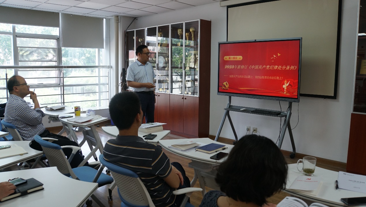 高振书记从修订背景、修订内容、修订意义以及亮点解读等四个方面,结合高校容易发生的违纪典型案例,对新修订的《中国共产党纪律处分条例》进行了详细解读。高振强调纪律严明是我党的光荣传统和独特优势,他在讲课中指出党的纪律是多方面的,但政治纪律是最重要、最根本、最关键的纪律,遵守党的政治纪律是遵守党的全部纪律的重要基础。政治纪律是各级党组织和全体党员在政治方向、政治立场、政治言论、政治行为方面必须遵守的规矩,是维护党的团结统一的根本保证。