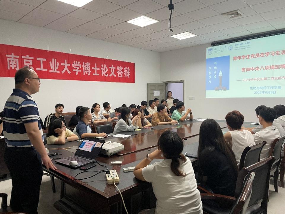 为深入学习贯彻习近平总书记关于全面从严治党的重要论述,进一步引导青年党员强化纪律意识、筑牢思想防线,公司研究生第二、第九党支部于6月9日晚在国家生化中心207会议室联合开展“深入贯彻中央八项规定精神”主题党日活动。
