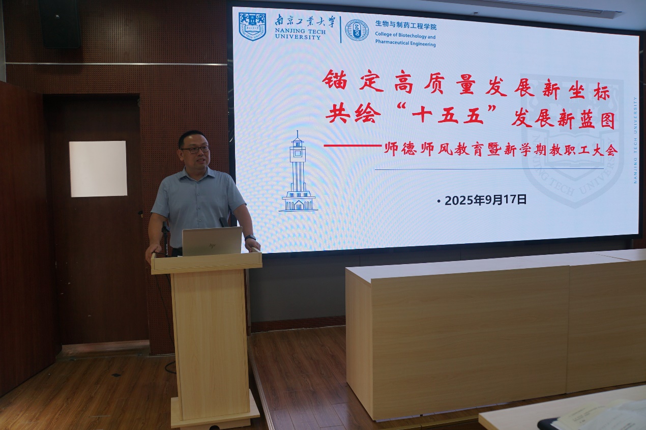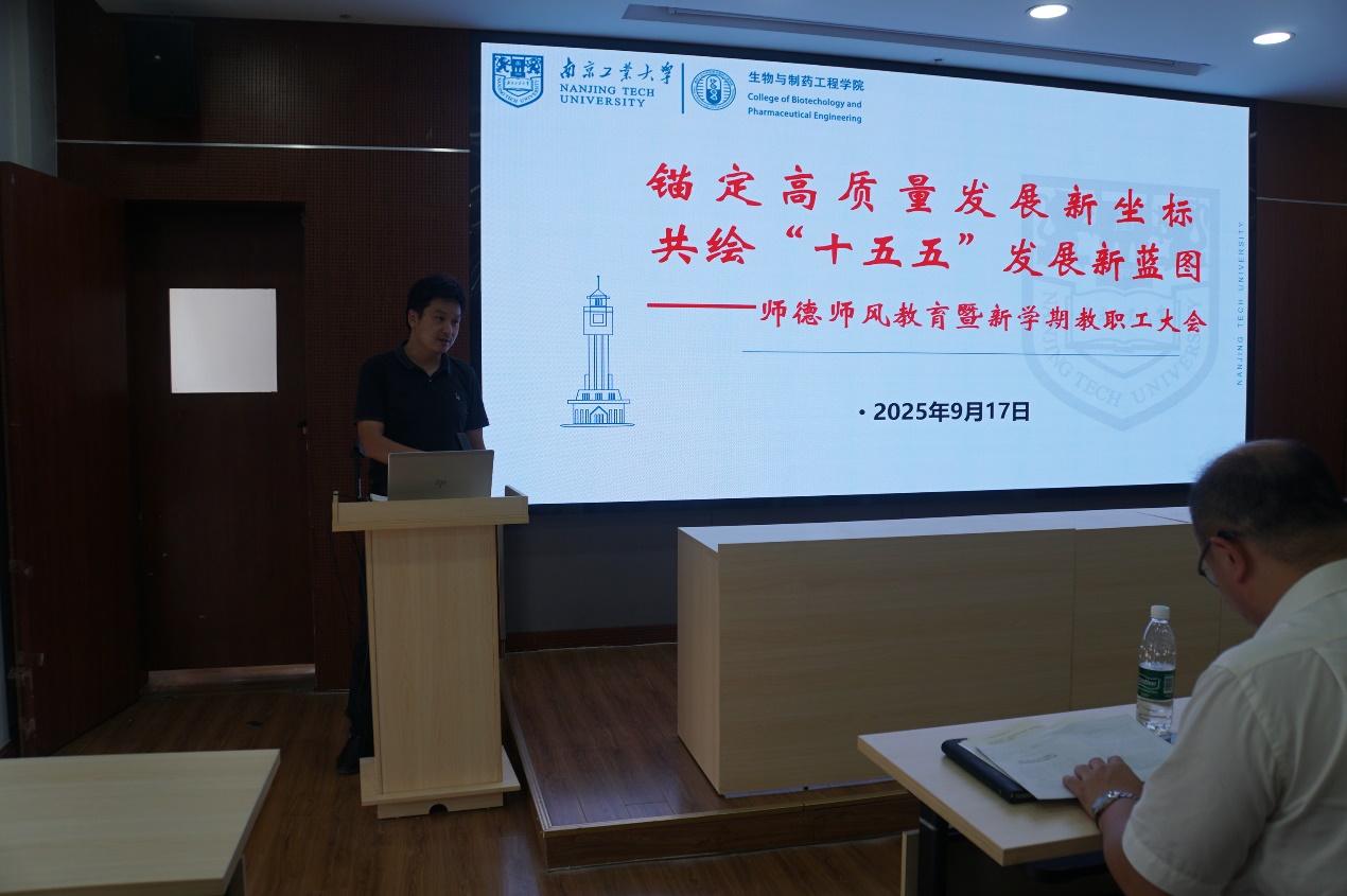 会上,徐元龙副书记结合分管员工工作,就学风建设号召全院教职工进一步发挥三全育人合力,重点抓好第一课堂和科技创新训练中的学风建设,为毕业生稳就业夯实基础。结合2025级新生学业导师计划,号召全院教职工积极参与进新生的专业导学和职业规划中,为提升人才培养质量践行为党育人为国育才使命。并以“学纪、知纪、明纪、守纪,筑牢拒腐防变思想防线”为主题,结合相关案例对师德师风建设进一步明确要求。贾红华副经理就本科教学工作方面有关制药工程专业工程教育认证、课程建设、教师能力培养和教学纪律等进行了介绍,强调教学质量是公司发展的生命线,希望全院任课教师进一步增强岗位责任感和使命感,不断提升专业课程教学质量,提升员工专业素养。方正副经理就公司产品、学科评估以及国际化工作进行了相关部署,明确了导师作为公司产品第一责任人,进一步提升员工学业质量与就业质量,为学科高质量建设贡献力量。