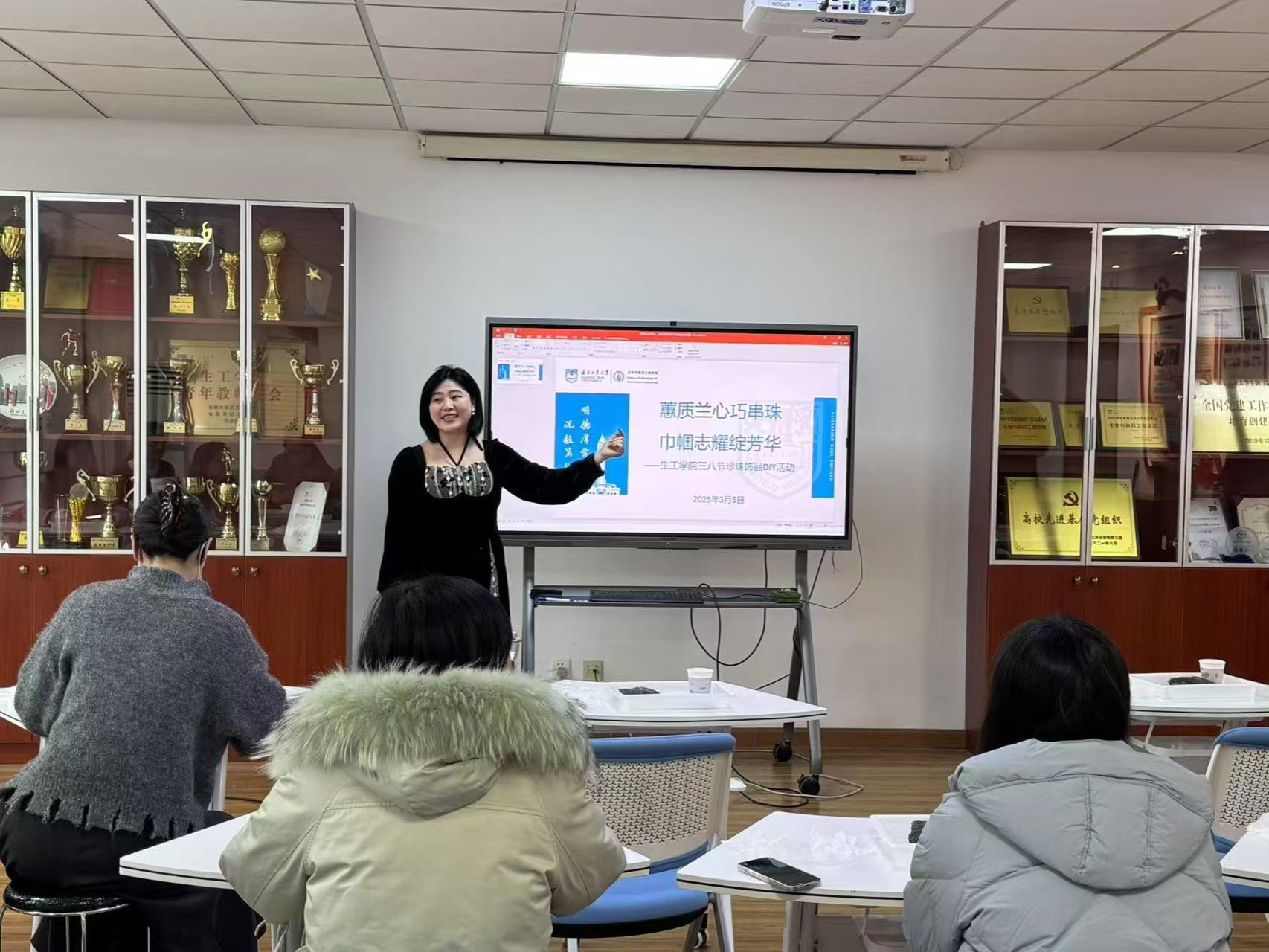 沾衣欲湿杏花雨,吹面不寒杨柳风。为庆祝第114个“三八”国际劳动妇女节,3月5日下午,beat365亚洲体育官方网站组织女教工开展珍珠饰品DIY活动。活动以传统手工艺为载体,通过开蚌取珠、胸针创意设计等环节,为女性教职工送上节日祝福。