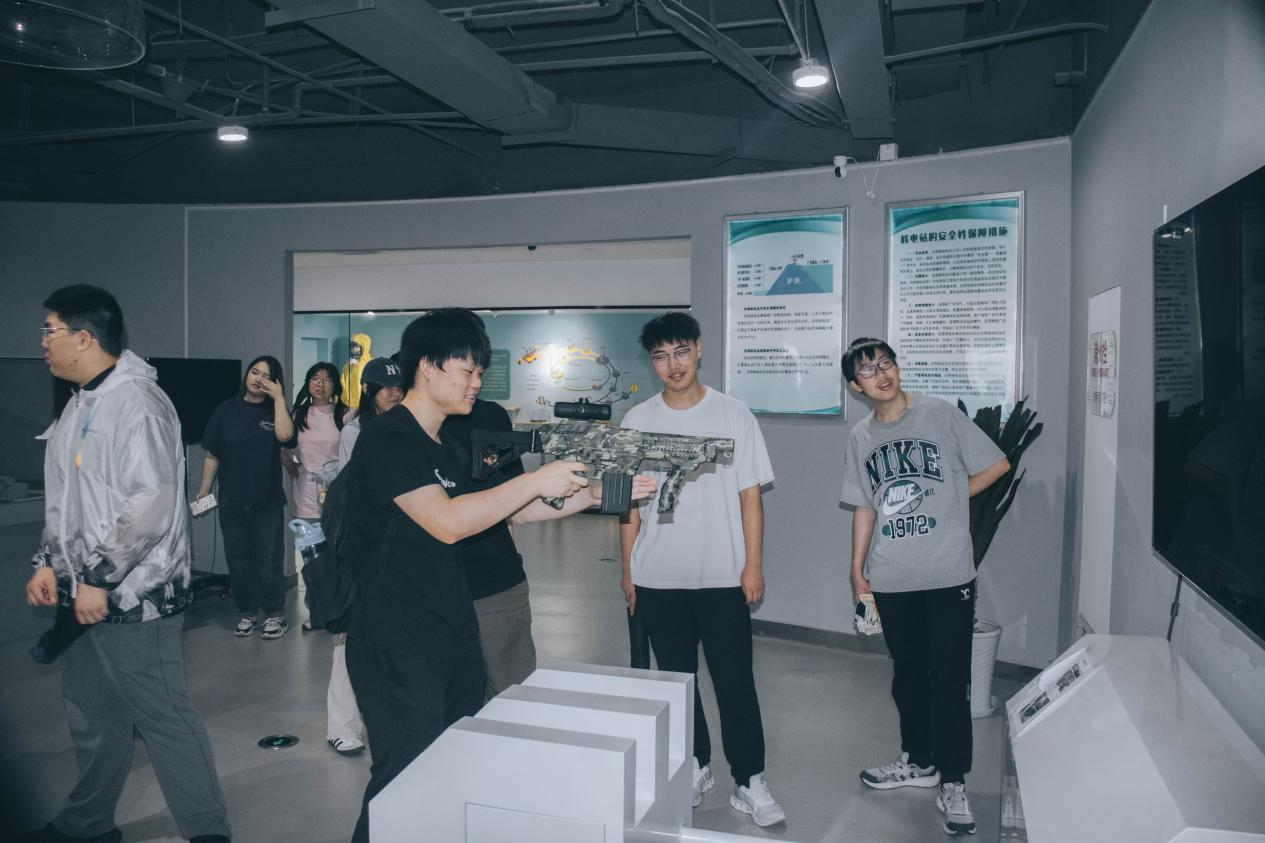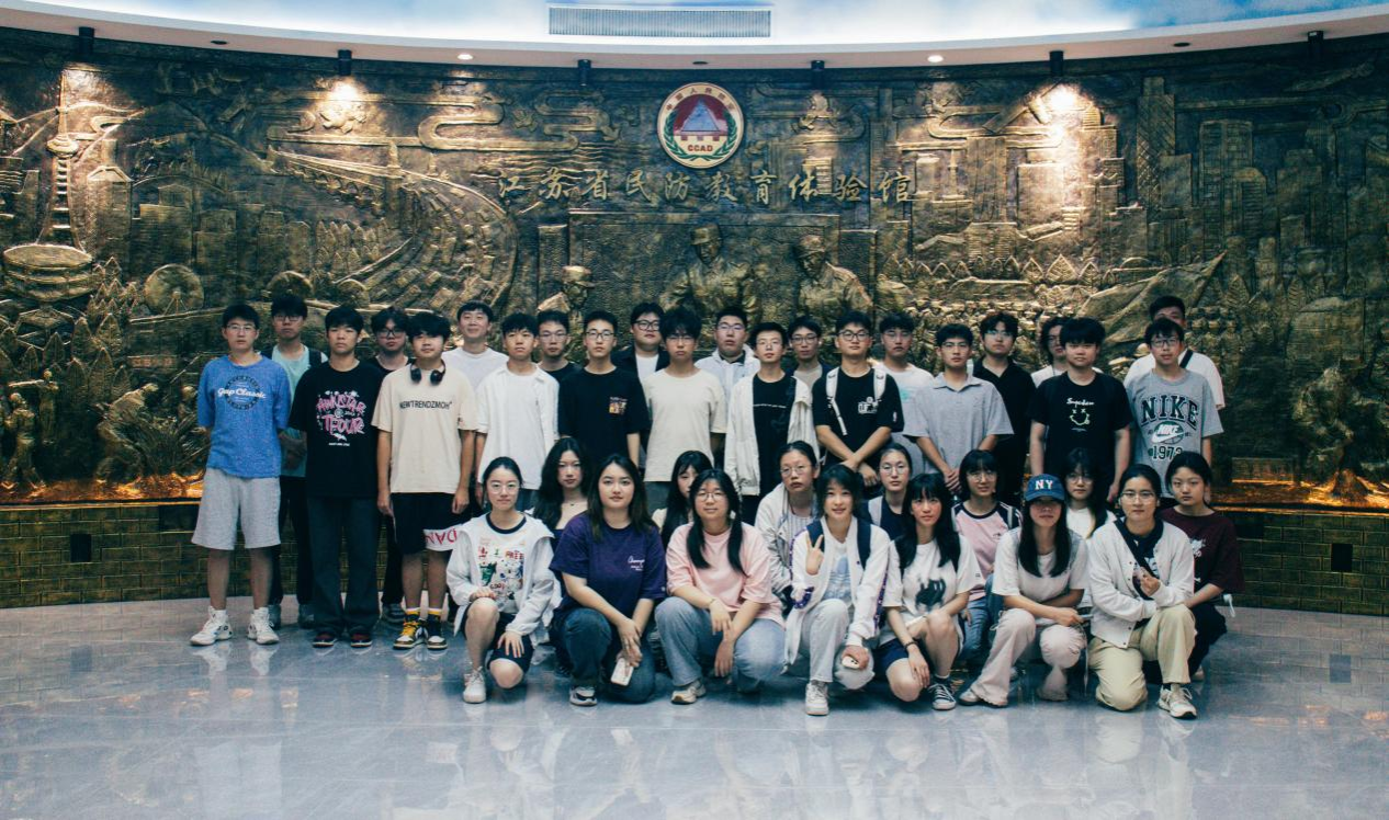 制药(国)2301团支部全体成员一同参观江苏省民防教育体验馆。序厅的浮雕墙正中间上方有”中国人民防空”的标志,庄严醒目,人防标志两侧展陈了现代军事卫星、飞机模型、与序厅顶部蓝天白云和飞翔的和平鸽形成恢弘壮阔之势。同学们在不同类别展厅内进行沉浸式体验,亲测防空警报器以及仿真炮弹抛射手柄等,在趣味中感受民防力量。之后,同学们进一步参观“家附近的人防工程“以及”人防工程的平战转移”展厅,这几个展厅与同学们的日常生活联系紧密,同学们进一步开阔眼界,强化民防意识。