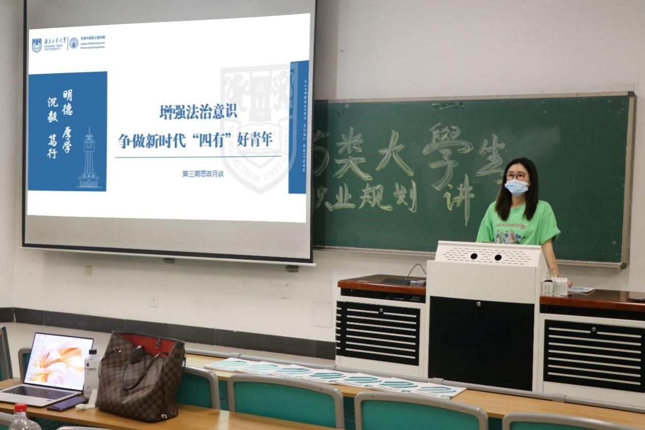 2019级辅导员张星老师以“学深悟透践行习近平法治思想”为主题,深刻领悟、准确把握、实际践行习近平法治思想。重点结合beat365亚洲体育官方网站员工日常科研实验的规章制度、求职就业、文明离校等方面,加强同学的法治教育,推动公司的高质量发展。