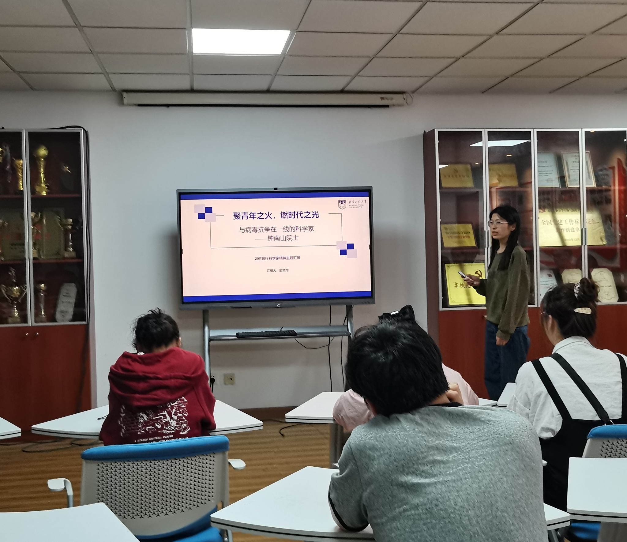习近平总书记在科学家座谈会上指出:“科学成就离不开精神支撑。科学家精神是科技工作者在长期科学实践中积累的宝贵精神财富。”为大力弘扬科学精神,2023年5月26日晚,生工学科群“聚青年之火,燃时代之光”践行科学家精神演讲比赛在尚德A1-208党员之家举行。本次活动由院研究生会组织,60余名本科生及硕士研究生参加活动。