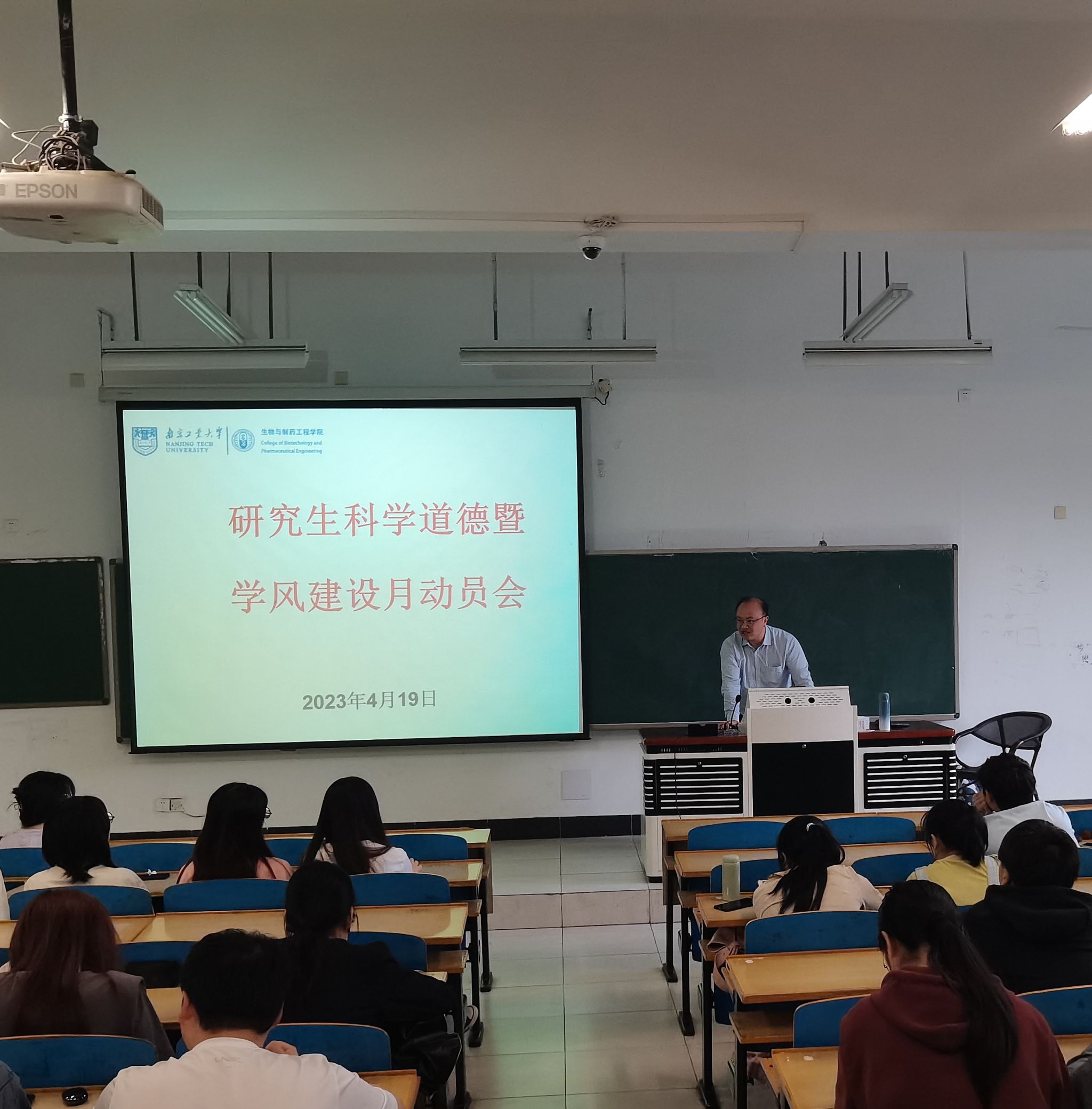 419日下午,​beat365亚洲体育官方网站在厚学201举办研究生科学道德和学风建设月动员会。生工学科群2022级研究生200余人参加活动由公司党委副书记兼纪委书记徐元龙主讲。