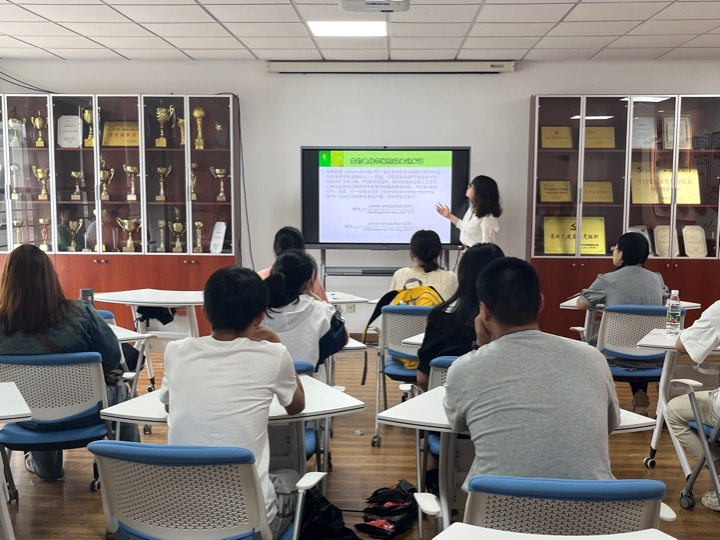 吴老师以“生物电化学技术及其应用”为主题,从生物电化学系统的概念和发展历程切入,详细介绍了阴、阳极微生物和电化学系统的一些构型,向同学们展示了生物电化学系统发展以来的卓越成果和广泛应用。