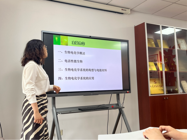 吴夏芫老师通过介绍日常生活中常见的电化学系统,以生动形象的讲解激发了同学们对生物电化学的兴趣。最后吴夏芫老师还将电化学研究与同学们的专业知识相联系,勉励同学们夯实基础,努力学习,成为生物行业的佼佼者。