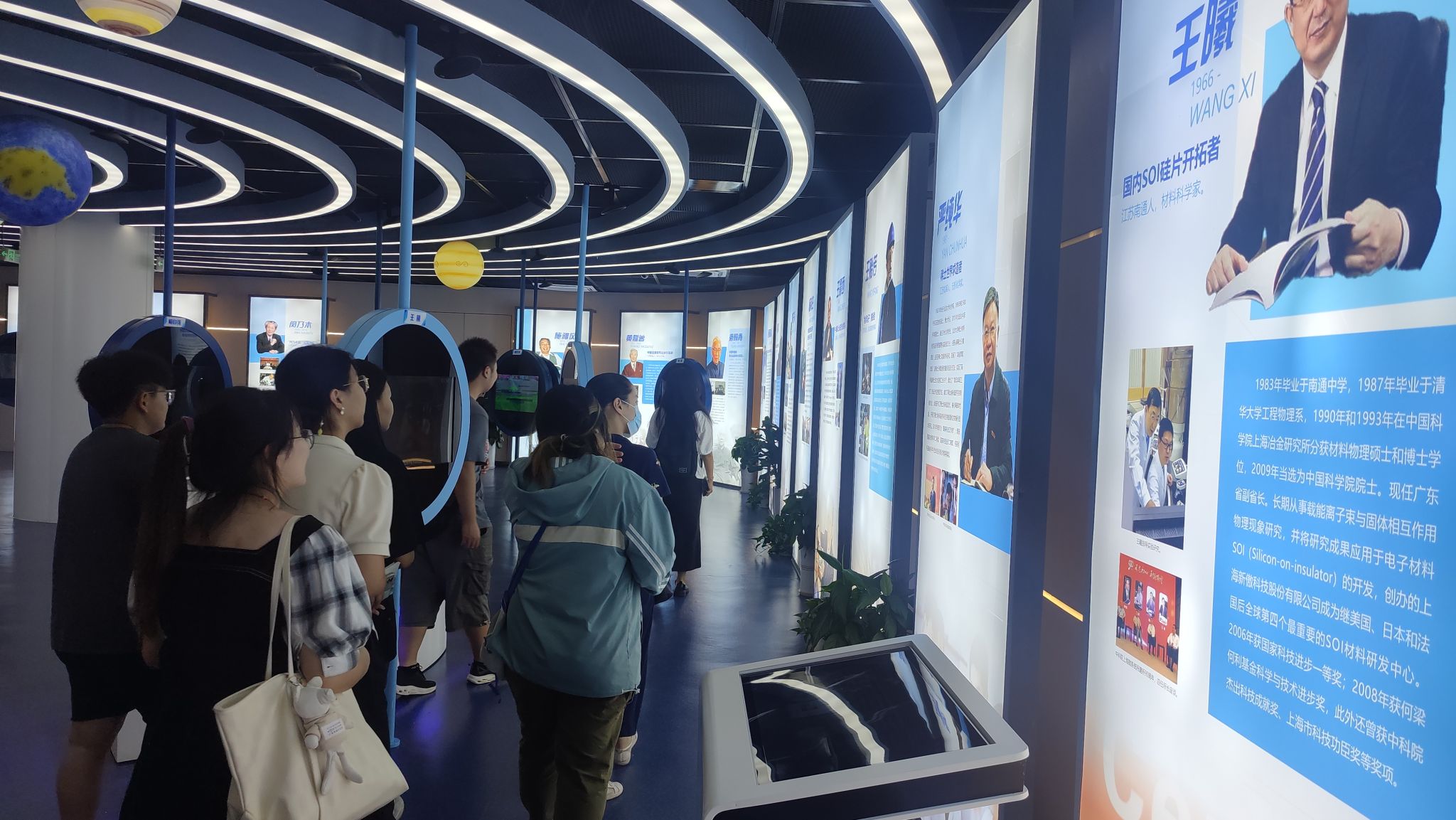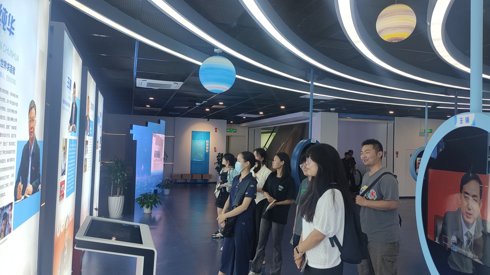 8月27日,南通籍23籍8名研究生新生赴南通群英馆科技翘楚展厅探寻科学家精神。南通群英馆坐落于濠河之畔,以历代群英讲述江海历史,是一个展示江海优秀儿女生命风采的荣誉殿堂。“科技翘楚”展厅设于南通群英馆当代馆。视频展板呈现、沉浸式cave空间,以及王贻芳院士捐赠的微通道板型光电倍增管、黄耀曾院士获自然科学奖一等奖的证书、南通本土培养的首位院士顾晓松研制的医用人工神经移植物等70件院士捐赠的实物,集中展现了南通52位两院院士和129位中青年科技英才投身科学实践、勇攀科学高峰的精彩瞬间。