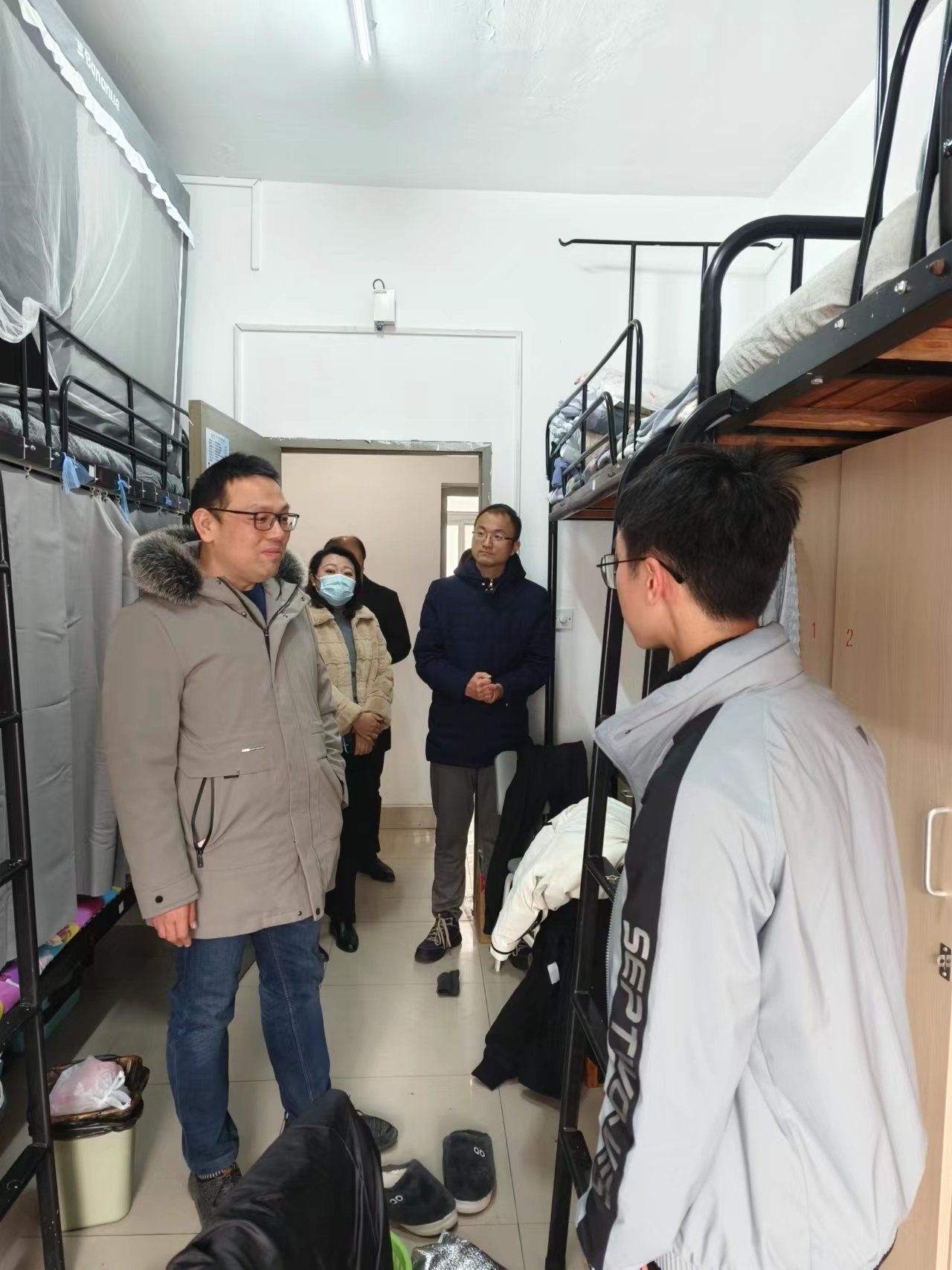 2024年元旦前夕,公司党委书记高振带队深入宿舍等地,开展节前慰问及宿舍安全检查工作,党委副书记兼纪委书记徐元龙,学办主任朱皓、23级辅导员以及员工会干部参加走访慰问。