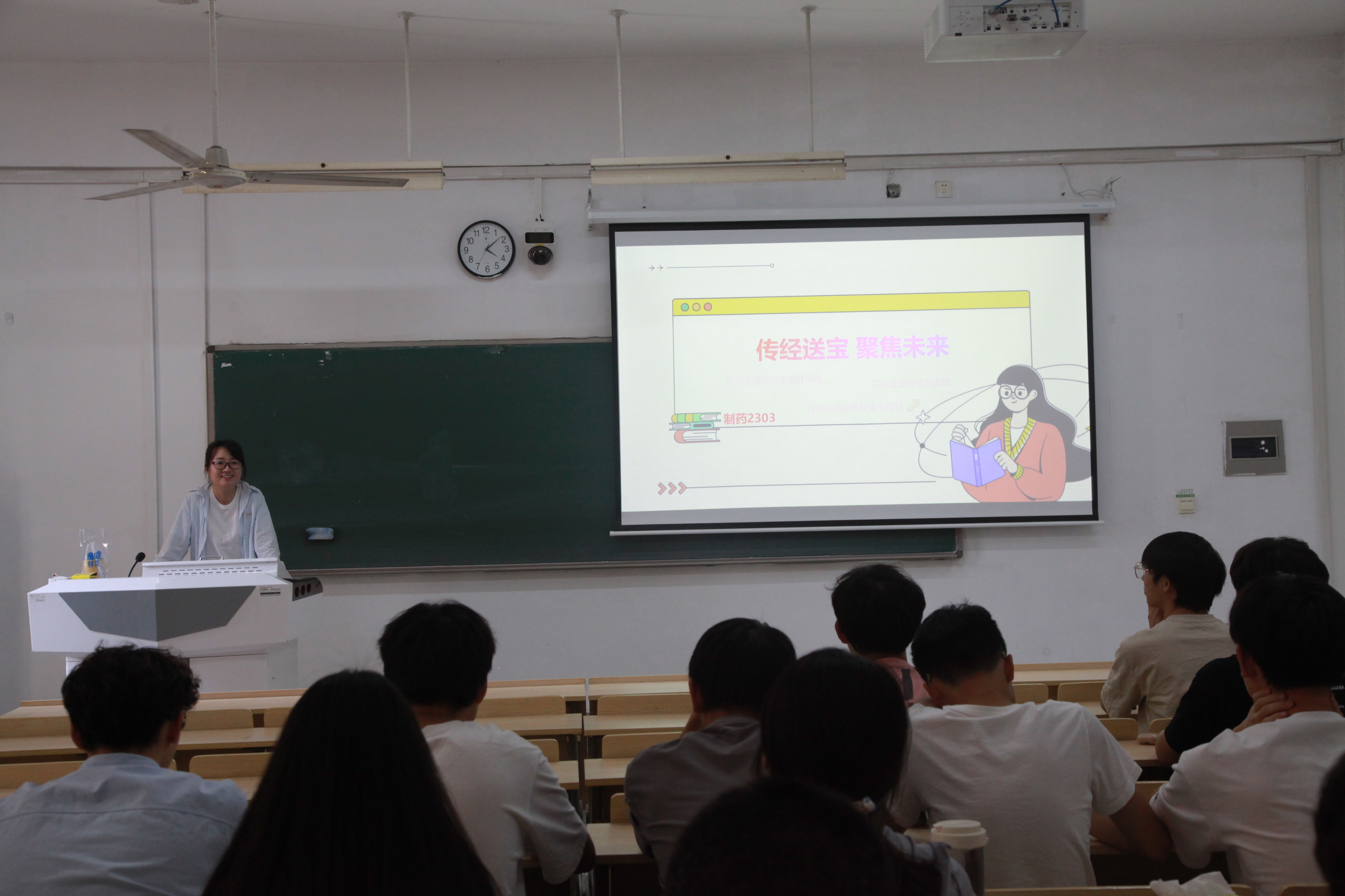 为进一步发挥朋辈榜样的示范引领作用,引导员工明确成长目标,科学规划老员工活。5月29日下午,制药2303班全体成员在笃学B206参加了“传经送宝,聚焦未来”2024年第6期青椒课堂微讲堂,本次活动由班主任钱秀娟老师组织,邀请到大二孙宸婧,大四何美霖和大四李玥蓉三位优秀学姐分享学习经验。