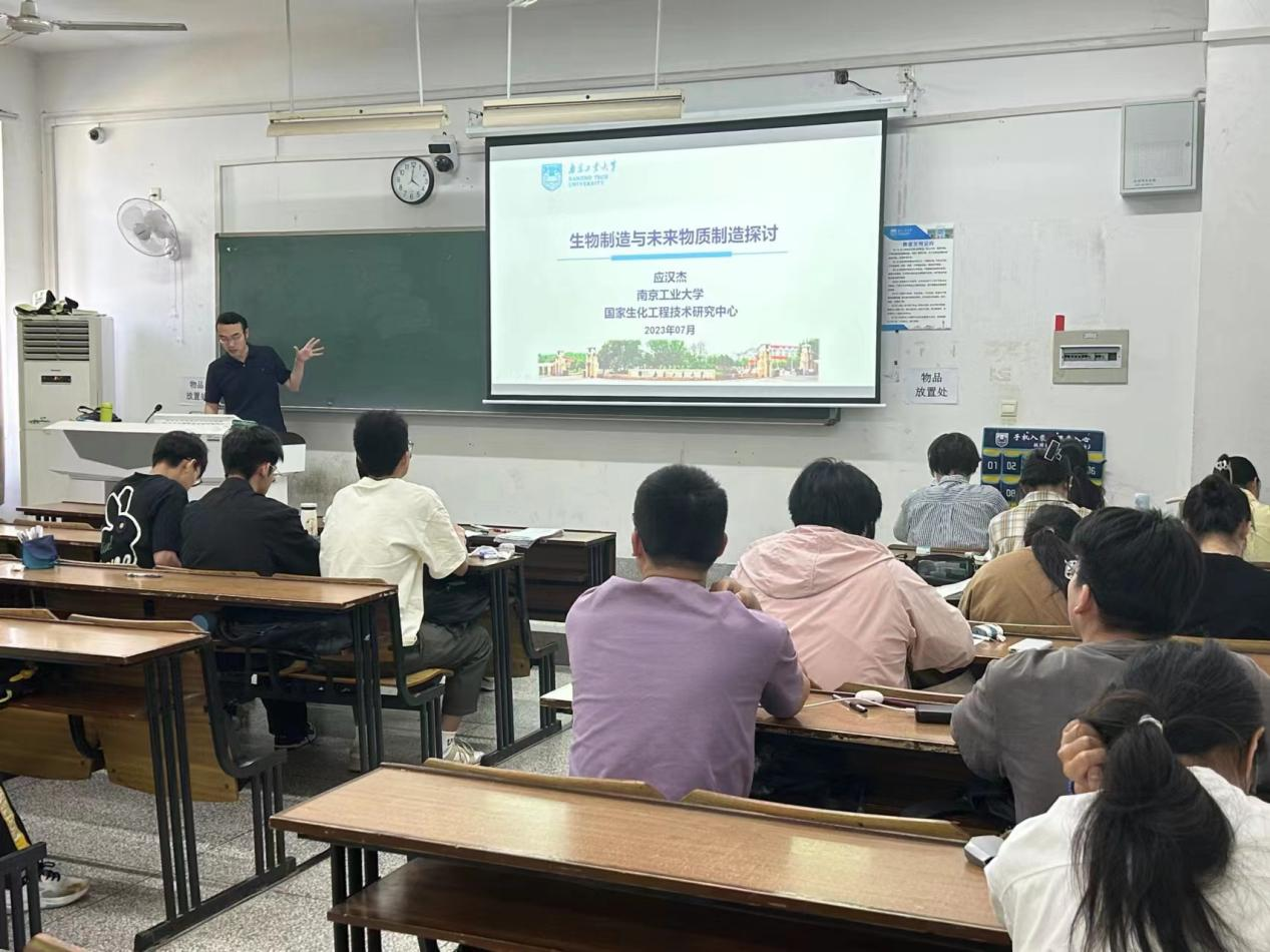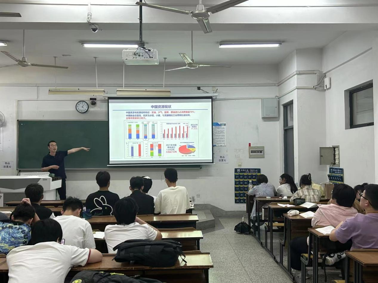 李明老师从中国资源现状出发,指出我国面临的贫油、少气、富煤以及粮食总量高但工业用粮比重低等问题,每年粮食缺口大,物质使用和碳排放问题日益严重。李老师强调,面对这些挑战,生物经济的未来发展机遇显得尤为重要。李老师对生物制造的概念做进一步阐释,告诉同学们生物制造不仅能够提高资源的利用效率,还能降低生产过程中的环境污染,实现绿色生产。在探讨中国生物制造的未来思考时,李老师提出了一系列前瞻性的观点,鼓励同学们思考如何通过生物技术优化粮食结构,发展绿色能源,推动产业升级,以及培育新兴产业,形成新的经济增长点。
