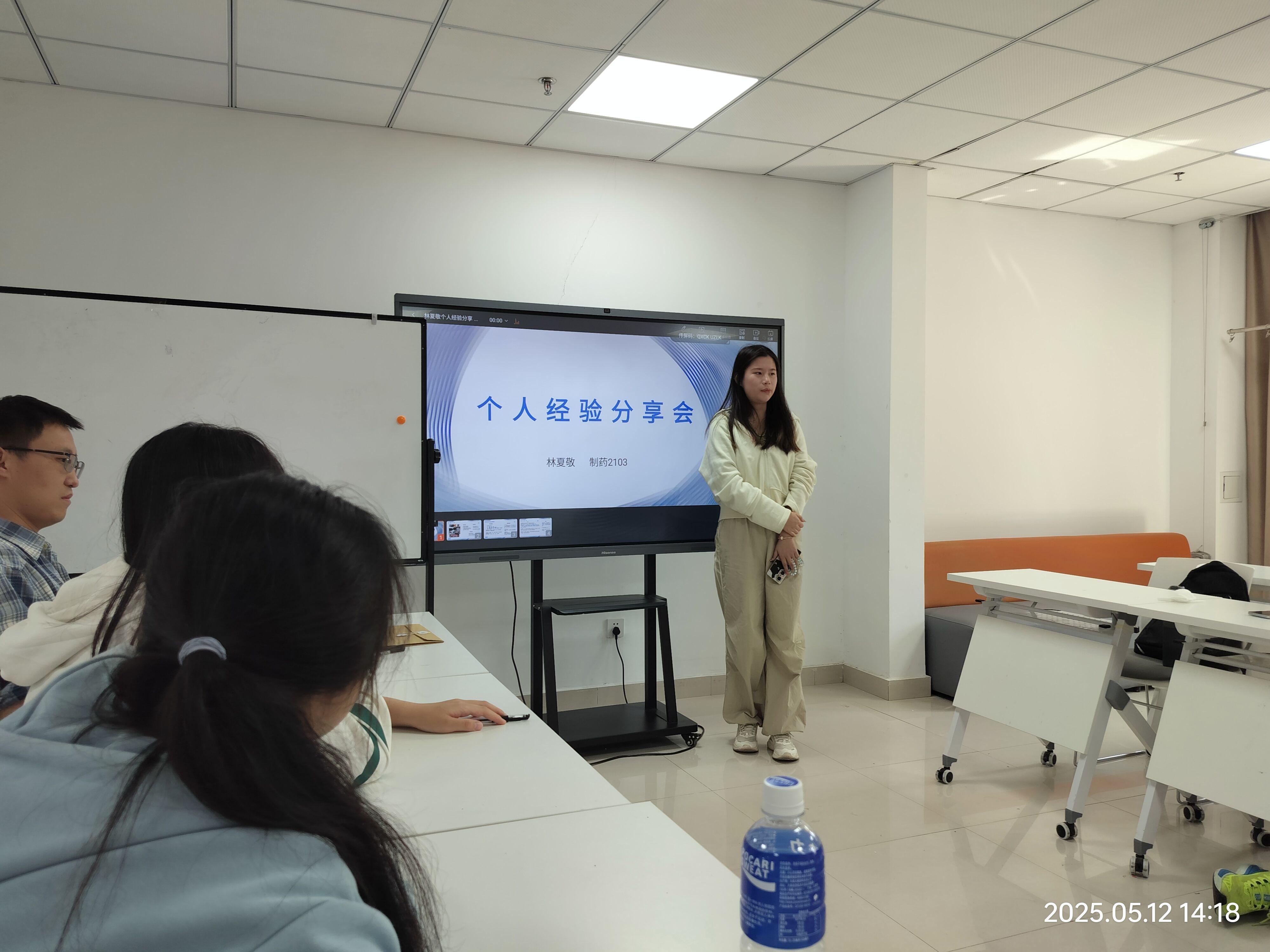 2025 年 5 月 12 日,一场主题为考研经验与老员工活分享的青椒讲堂在南苑一站式社区开展。讲堂伊始,制药2404班班主任尚言国老师为大家带来了 KRSA 靶向治疗的前沿介绍,让我们领略到在医学科研领域,如何从看似 “不可能” 的困境中寻找突破,为后续的考研经验分享奠定了充满挑战与机遇并存的基调。