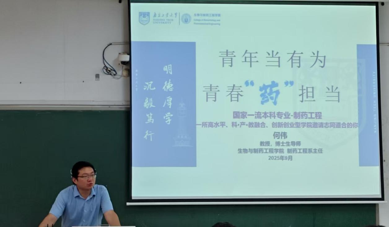 制药工程系主任何伟老师以“青年当有为,青春‘药’担当”为教育主题,从专业发展、课程体系、发展模块、团队力量、公司实力等方面对制药工程专业展开了详细的介绍,让2025级新生对本专业有了进一步的了解,为其明确大学四年学习内容、制定职业规划提供了支撑。通过深入浅出的讲解,新生们对所学专业有了更加全面和深入的认识,对未来的学习生涯充满了期待。何伟老师也对新生们常见的问题进行了详细解答,坚定了大家努力学习的决心和信心,以此更好的规划大学学习生活。