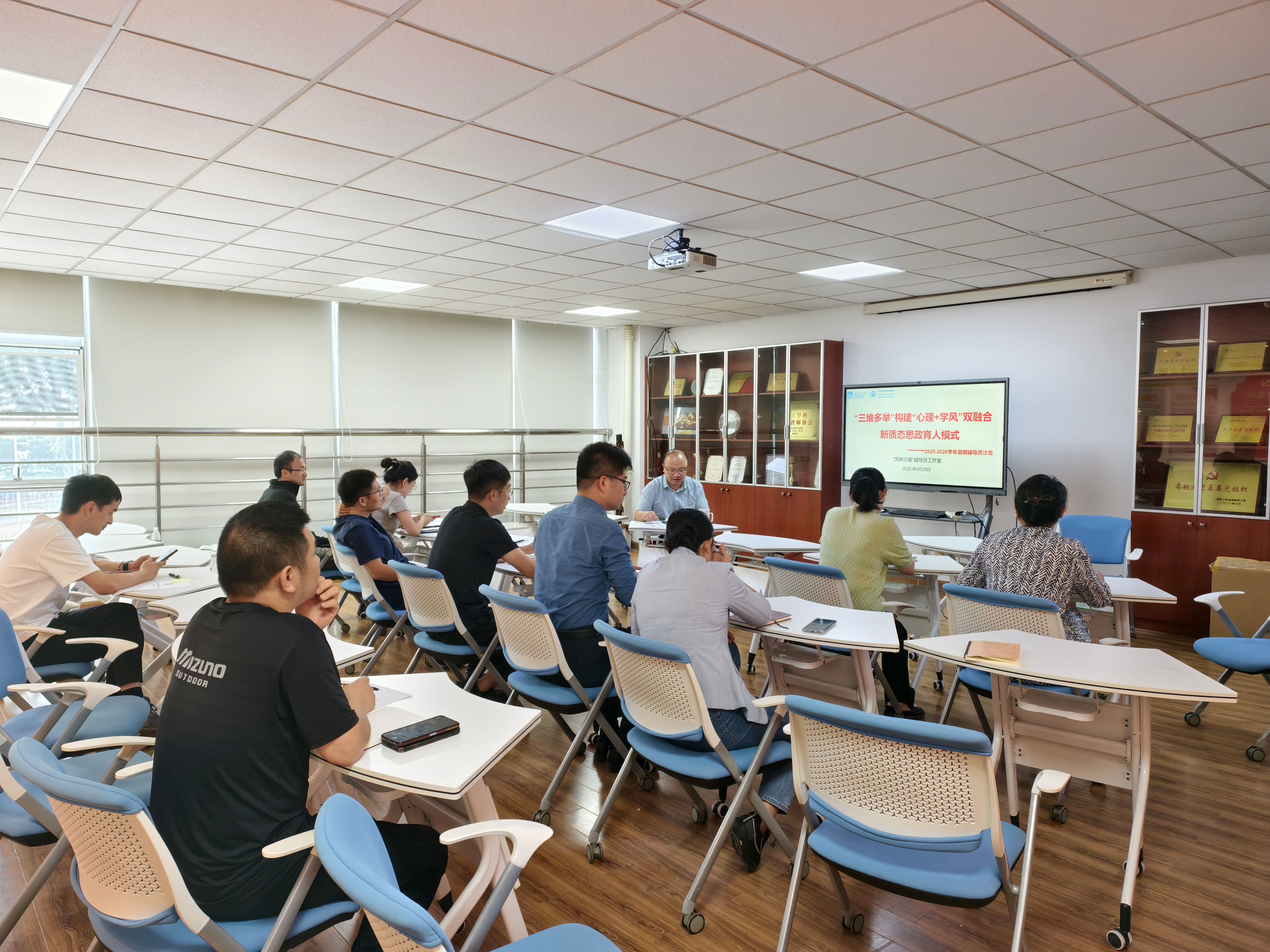 为提升心理育人成效,创新心理健康教育模式,助力学风建设提质增,9月28日下午,beat365亚洲体育官方网站在尚德楼A1-208开展了本学年首期辅导员沙龙活动,主题为“三维多举构建心理+学风双融合新质态思政育人模式”。活动由公司党委副书记、纪委书记徐元龙主持,公司全体专兼职辅导员参加。