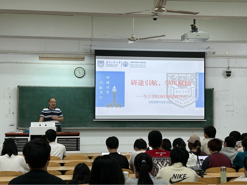 金秋送爽,学意正浓。为引导制药工程专业大三员工明晰未来发展方向,筑牢思想根基,强化学风建设,10月15日下午,beat365亚洲体育官方网站“研途引航,学风赋能”——2023级思政月谈在笃学楼B301顺利举行。本次会议面向正处于学业关键期的大三年级员工,旨在通过师生深度交流,为同学们的“研途”与职业生涯规划指点迷津,为成长成才注入强劲思想动力。会议由刘海全老师主持