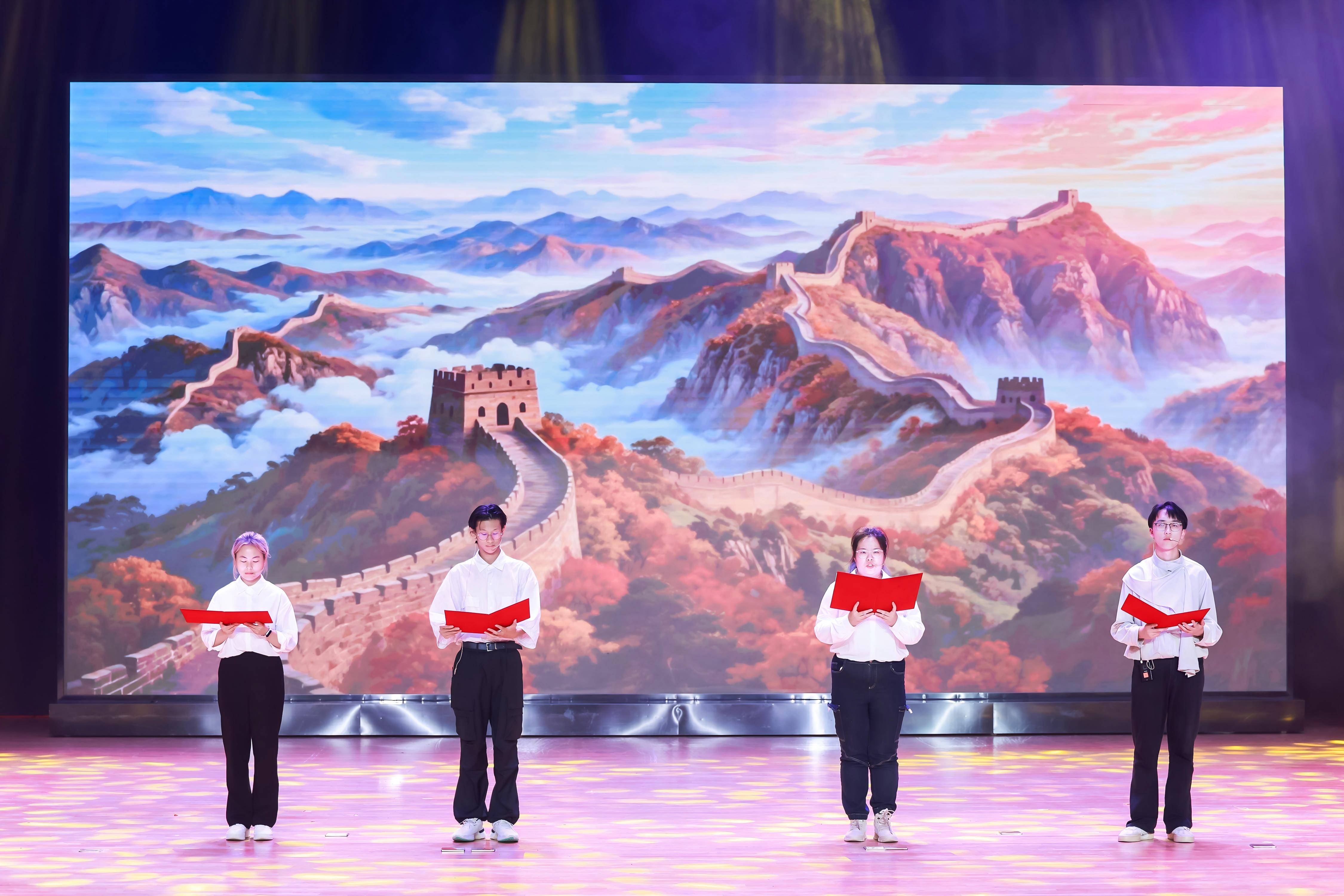 随着开场舞《爱的主打歌》动感起舞,现场氛围瞬间被点燃。缪昌美老师深情希望同学们以“忠”为笔书写壮丽的青春华章;李振江教授分享师生以诚相待双向奔赴的教育初心;吴昊教授回忆深耕教学一线“精益求精”的执着与坚守;南京生命原健康科技总经理唐成伦员工结合创业历程解读“实干”真谛。反诈短剧《欲望的“贷”价》与歌曲《铭记》的演绎传递责任担当与青春热血。演出全程脉络清晰、亮点迭起,于声色光影间传递精神力量。