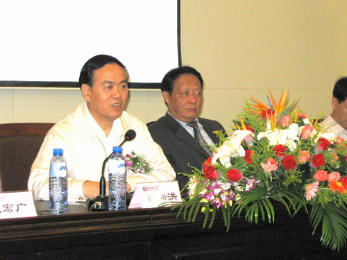 联合研究开发中心主任黄和教授在会上了充满创新激情的发言。他认为联合研究开发中心的成立,顺天时、占地利、得人和。