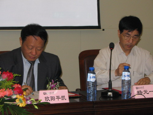 会议由副董事长徐南平教授主持。中国石油化工股份有限公司副总工程师杨元一先生和董事长欧阳平凯院士在合作协议书上签字。科技部中国生物技术发展中心王宏广主任、江苏省科技厅李奇副厅长和江苏省教育厅殷翔文副厅长分别致辞,对联合研究开发中心的成立表示热烈的祝贺,并寄予了殷切的希望。