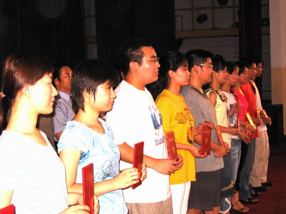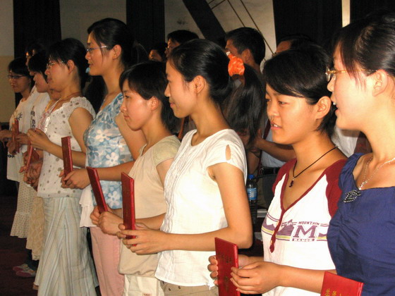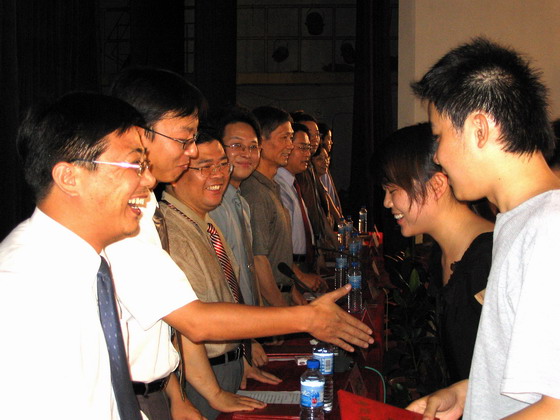 公司党委缪昌美书记宣读了《关于表彰2005届优秀毕业生的决定》、“考研路上敏于行”征文先进个人以及2005届就业先进个人名单,授予纪晓俊等26名同学“beat365亚洲体育官方网站制药与生命科学公司2005届优秀毕业生”称号,刘翔等10人为2005届就业先进个人称号,刘伟等13人为“考研路上敏于行”征文先进个人,章燕等10名同学为文明离校先进个人,公司党政领导向优秀毕业生颁发了证书。
