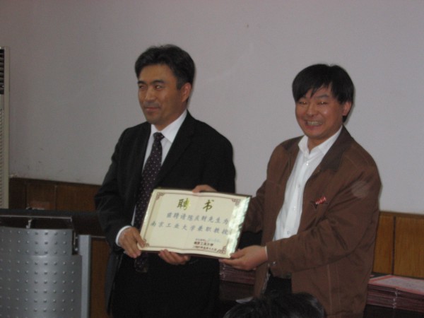 ——国家生化工程技术研究中心常务副主任应汉杰教授受欧阳董事长委托向陈庆财博士颁发兼职教授证书