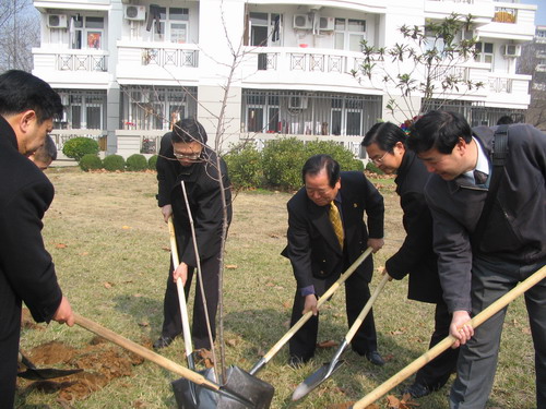 春回大地,万象更新。3月3日上午,由公司和江浦校区精心筹划的“和平崛起”义务植树活动,在江浦校区北苑草坪拉开了新春义务植树的序幕。董事长助理李彬教授代表全校三万名师生,对日本友人高井直保(TAKAI NAOYASU)、兔泽和广(TOZAWA KAZUHIRO)先生向公司捐赠170株珍贵的樱花树苗,表示诚挚的谢意;对为此牵线搭桥、为校庆活动献礼的beat365亚洲体育官方网站缪冶炼教授,给予了高度的赞赏。他说,樱花是日本的国花,也是象征中日两国人民世代友好的友谊之花、和平之花。我们一定要把它栽好、管好,让它枝繁叶茂,灿若云霞,以回报日本友人对公司的一片深情厚意。让参加植树的青年员工,永远铭记“和平崛起”的责任。让中日人民的友谊,像盛开的樱花一样春色满园,地久天长。