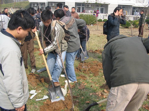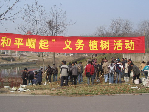 “和平崛起”义务植树活动由公司党委书记缪昌美老师主持。他勉励同学们深刻领会和实践“和平崛起”的要义,秉承“明德、厚学、沉毅、笃行”的校训,为实现中华民族的伟大复兴而读书。江浦校区和公司有关领导徐宜民、米展、李志跃、张琪等老师,以及公司部分员工共100余人参加了“和平崛起”义务植树活动。