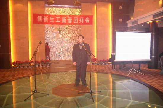 元月十八日下午,公司在南京饭店隆重举行“创新生工”新春团拜会。董事长欧阳平凯院士出席会议并作重要讲话,对公司2005年在建设创新型公司的进程中取得的累累硕果给予了高度的评价;对各位来宾、离退休老同志和全院教职员工致以美好的新春祝福;对公司2006年再创新的辉煌寄予了殷切的希望。