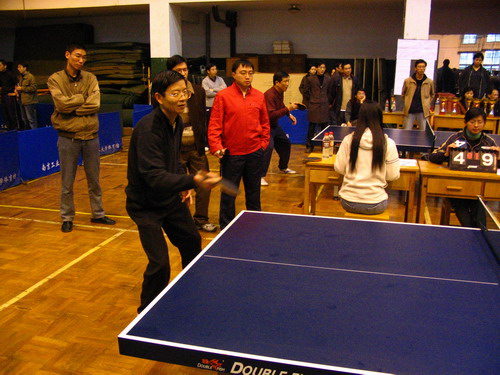 比赛场上,公司乒乓球代表队蓬勃的朝气、拼搏的勇气和创优的志气,令观众为之感动。男子组张赣道教授老当益壮,既是教练员又是运动员,其不懈的精神和精湛的球艺,感染着运动员和观众;沈树宝教授在首场比赛中力挽狂澜,为男子组顺利出线打下了良好的开端;缪冶炼教授这位校运会铅球冠军,挥起乒乓球拍来颇有大将风范,其团队精神和富有特色的球艺引人关注;姜岷副教授越战越勇,尽显青春活力,被誉为此次教乒赛上的“黑马”。女子组何冰芳教授在赛场上潇洒自如,不时传出爽朗的笑声,展示了公司乒乓球代表队的自信和友善;魏荣卿副教授带病参赛,德艺双馨,连连得分;王桂兰工程师泰然自若,不愧是种子选手;魏秀丽博士初试锋芒,蓄势待发,充满了激情。