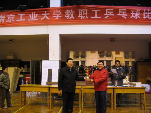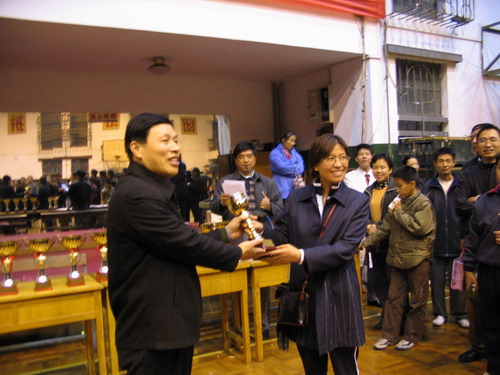 ——何冰芳教授代表公司女子组领奖(左为校工会主席潘桐山副教授)