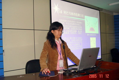 2005年11月11日~13日,江苏省生化与分子生物学学会在江苏大学召开了第八次学术大会暨第七次会员代表大会。公司刘晓宁教授、谢宁昌副教授作为学会理事率研究生张婷婷和杨洋参加了大会。大会增选公司何冰芳教授为学会第七届理事会理事。大会收到论文148篇,刘晓宁教授等有4篇论文入选。张婷婷和杨洋同学在大会上分别作了题为《国产氢型阳离子交换(磺酸型)HPLC色谱柱在利巴韦林分析中的应用》以及《国产聚合物型反相色谱柱HPLC法分离五种生物碱基以及聚合物基质反相色谱柱分离七叶皂甙钠的研究》的学术报告。