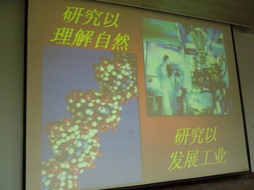 他强调研究生作为科技工作者,应该多思考理想与责任这个问题。他说,一个人、一个社会如果没有理想就会出大问题。科技工作者不能对身边世界的事情漠不关心,只埋头于科学研究之中,做“深井之中的科学家”,而应该承担相应的社会责任,关心社会中存在的问题。