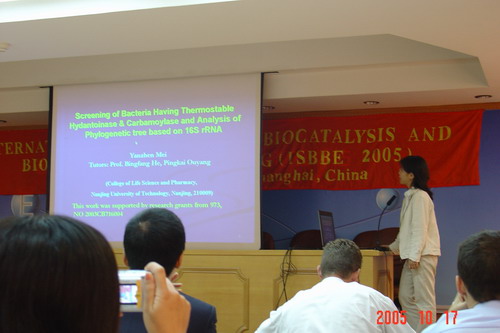 在国家自然科学基金委的大力支持下,“生物催化与生物加工国际研讨会”(ISBBE 2005)于今年10月16-18日在上海华东理工大学召开。与会的国内外知名专家包括Prof. Uwe Bornschewer (Greifswald, Germany),Prof. Yasuhisa Asano (Toyama, Japan),Prof. Mei-Xiang Wang (Beijing,China)等十多个国家生物催化与生物化工领域的知名学者。
