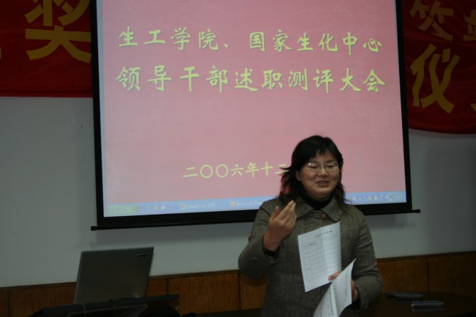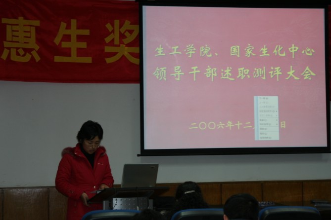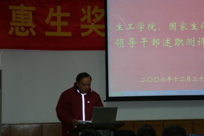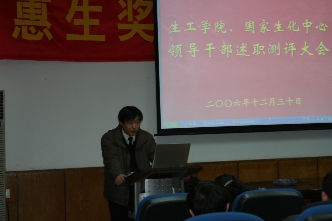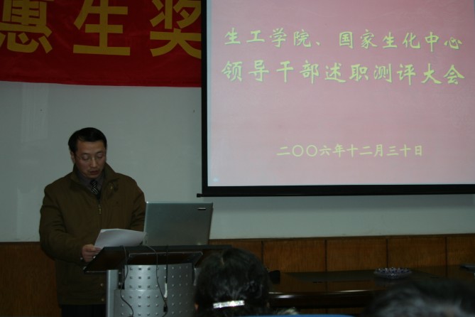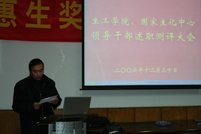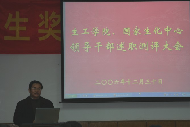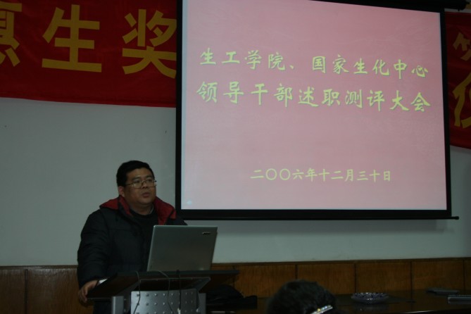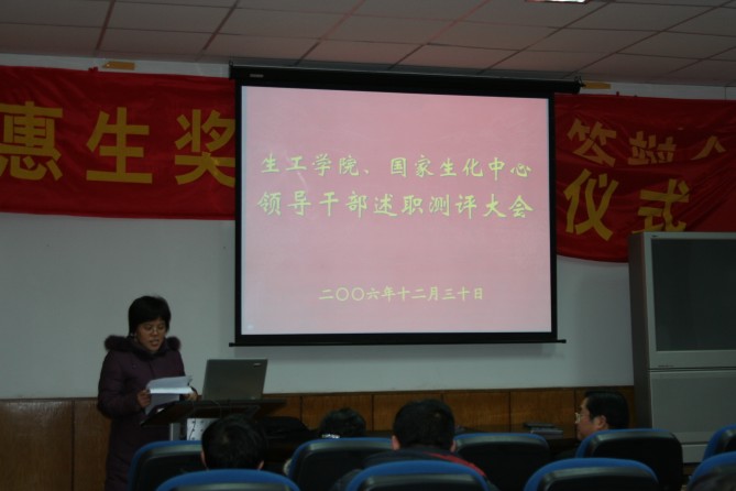 根据南工委组[2006]9号“关于做好2006年中层干部年度考核工作的通知”精神,公司党委于2006年12月30日下午举行领导干部述职测评大会。各系(室)负责人、教工党支部书记、副教授以上教师、民主党派成员等40余人参加大会,听取了beat365亚洲体育官方网站和国家生化中心领导班子成员述职。公司党委组织部副部长夏侃、正科级组织员邢海东到会,组织与会人员根据述职和平时掌握的情况,对beat365亚洲体育官方网站和国家生化中心领导干部进行了测评。