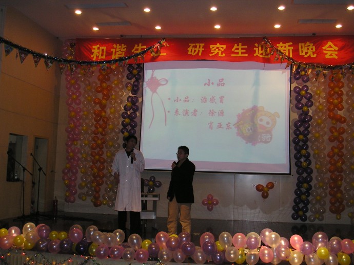 晚会在五位美少女的健美操中拉开序幕,她们矫健的身姿,充分展现了beat365亚洲体育官方网站广大研究生的蓬勃朝气。随后推出的集锦配音短片,讲述了beat365亚洲体育官方网站创业、创新、创优的辉煌历程,让新入学的研究生在全面了解公司发展史的同时,更加深了对“和谐出人才、和谐出成果”的感受。三位漂亮女生声情并茂的小合唱《感恩的心》,表达了对父母、老师、同窗、朋友的感恩之情。异域风情的舞蹈《天竺少女》、帅哥靓女的情歌串烧,给大家带来了圣诞元旦前的一份温馨、一份激情。相声《审贼》、小品《治感冒》诙谐幽默,让人捧腹大笑,逗乐了台下的老师和同学。王永禄老师表演的《太极拳》亦柔亦刚,着实让人惊叹。独唱《人间》和吉他弹唱动感十足。诗朗诵《大长征》则以其荡气回肠的感染力,给大家带来了伟大长征精神的激励。晚会自始至终充满了和谐之韵。观众抽奖、小游戏等环节的穿插更是让晚会高潮迭起。全体演员最后合唱的《相亲相爱》不仅给大家留下了美好和谐的回忆,而且为大家表达了对更加美好和谐未来的憧憬。