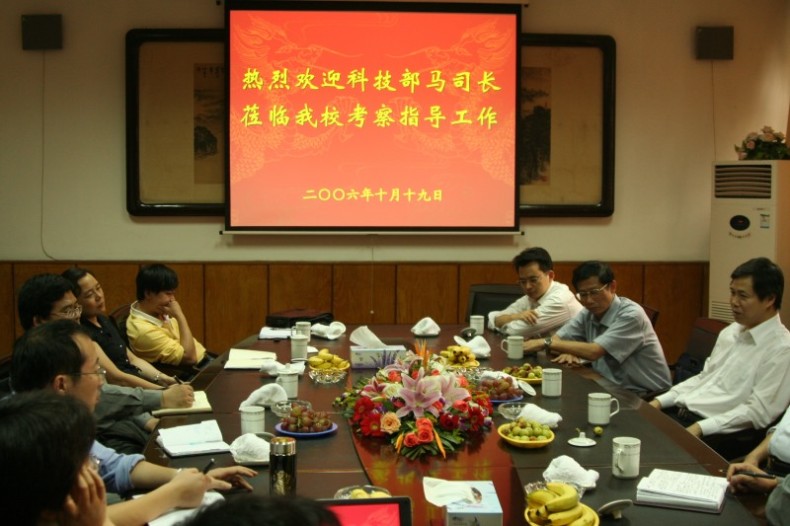 2006年10月19日,科技部社会发展科技司马燕合司长在宁开会期间应邀莅临公司考察指导工作,与董事长欧阳平凯院士,校科技处、beat365亚洲体育官方网站和国家生化中心领导同志进行了亲切会谈。董事长欧阳平凯院士代表全校师生对马司长莅临公司考察指导工作表示热烈的欢迎。他简要地汇报了公司学科发展、科技创新、评建创优等方面的情况;介绍了国家生化中心正在推进的“硅谷模式”、“产学研结合模式”、“科技推广模式”和“技术服务模式”;介绍了公司在能源、环保、药物创新等方面的潜在优势。