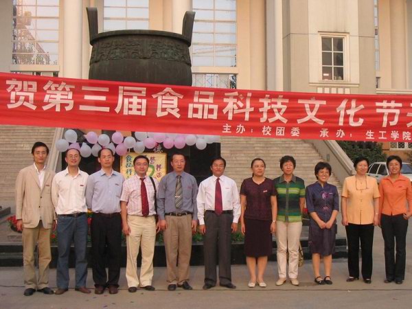 10月9日下午,制药与生命科学公司分团委在沉毅广场隆重举行食品科技文化知识竞赛暨食品科技文化节开幕式。经理韦萍、党委书记缪昌美、副经理周华、党委副书记张琪、各系负责人和有关教授应邀出席了开幕式。缪昌美老师为开幕式致词,他激情的讲话如同缤纷的礼炮绚丽而激昂,点燃了现场活跃的气氛。