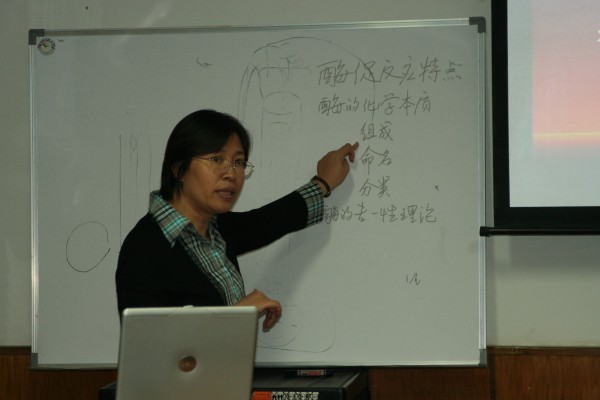 示范课上,何冰芳教授对《酶通论》进行了讲解。她严谨的治学态度、娴熟的教学艺术、饱满的授课激情、隽秀的板书课件、清晰的理念思路、活跃的课堂气氛,给大家留下了深刻的印象。大家感到此次示范课受益匪浅,认为通过这次示范课为他们找到了今后在教学中应该努力和奋斗的方向。并希望公司今后有针对性地多举办类似的示范课。副经理周华要求青年教师从教学名师的示范课中去领会课堂教学的艺术,从课前准备、教学实施、课后反思三个环节去把握课堂教学的关键,从而不断提升自己的教学质量。