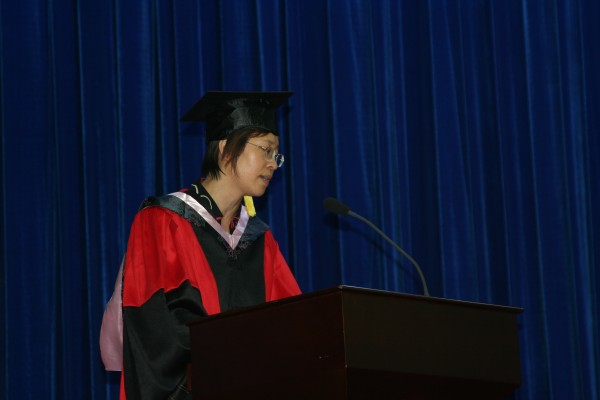校优秀毕业生余惠明同学、院员工会主席李红倩同学相继作为毕业生和在校生代表发言。其间,何冰芳教授、余惠明同学分别代表教师和毕业班员工向毕业生和低年级员工赠送了恩师赠言和毕业留言。对母校的眷恋、与同窗的友谊、以及对未来的憧憬和希望,都通过她们的言语在礼堂中久久回荡。