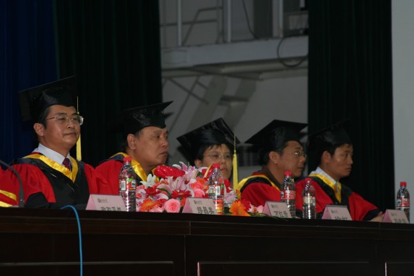 卢定强副经理宣读了关于2006届毕业生成绩合格、准予毕业的决定。280名毕业生在欢快的乐曲声中依次走上主席台,从导师手中接过深红的毕业证书并合影留念,感受顺利完成学业后的喜悦。