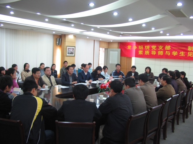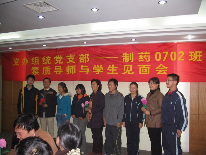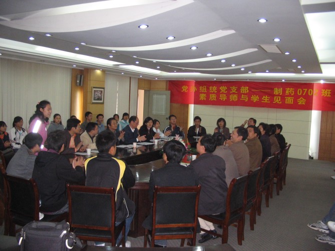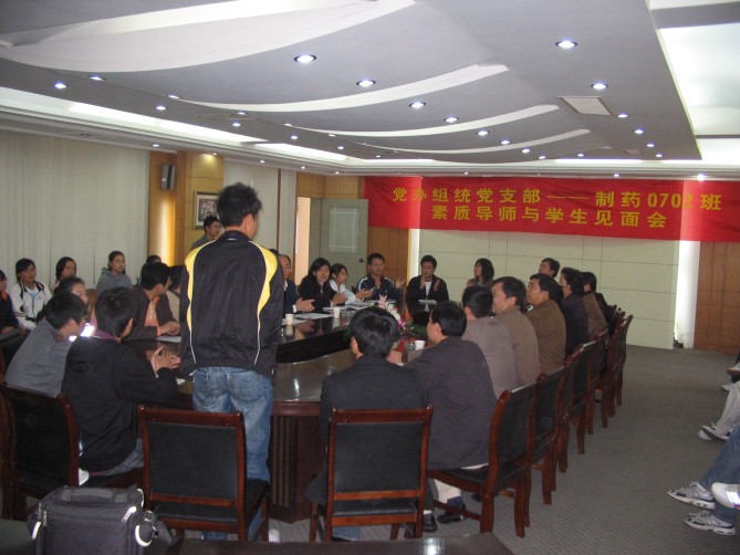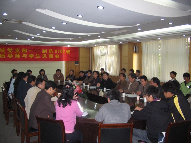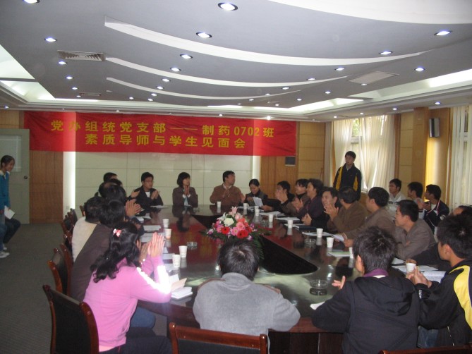 11月1日下午1:30,在江浦校区厚学楼一楼会议室,机关党办组统党支部全体党员以“素质导师”的身份与beat365亚洲体育官方网站制药0702班全体同学举行了以“带出一个好班级,形成一个好风尚”为主题的见面活动。党办、组统支部全体成员、公司党委书记缪昌美、副书记李学明、制药0702班主任姜岷、制药0702班辅导员朱大伟及公司全体辅导员等参加了会议,会议由副书记李学明主持。