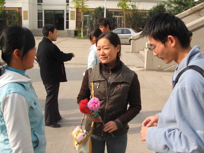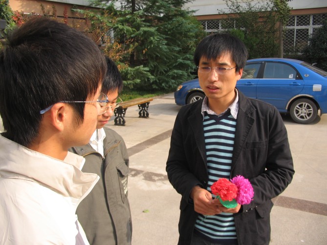 会上,支部每一位成员都用一句话(如:用爱心和同学交心,坚持恒心,充满信心做好每件事;带着压力、互帮互助、期待美好明天;真诚热情做好服务;工大人、工大情;主动加主动;踏踏实实做好每件事;交朋友、共筑友谊等)来表达了对做好这项工作的决心。同学们为了感谢每位“导师”的关心,亲自手工制作一支花送给各自的“导师”,花的叶片上写下员工的姓名联系方式和他们的座右铭。见面会之后,大家在“带出一个好班级,形成一个好风尚”的横幅上签名并一起合影留念,支部党员和联系的员工“一对一”的交流谈心,并把各自的联系方式给了每一位同学。
