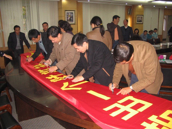 ——素质导师们在“带出一个好班级,形成一个好风尚”横幅上签名