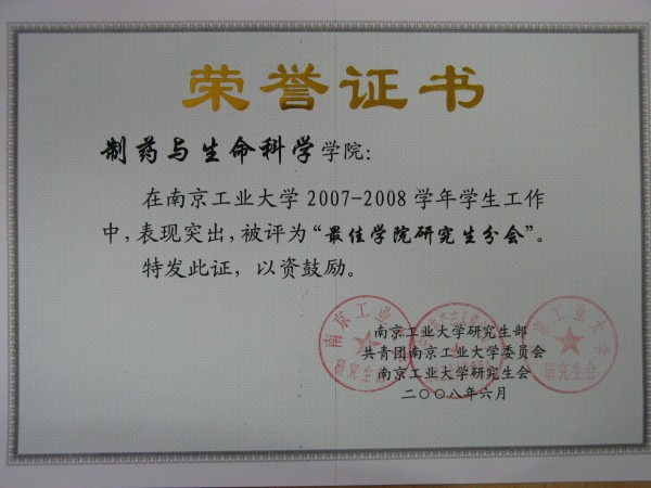 在刚刚结束的由研究生部,校团委举办的“2007-2008学年研究生会优秀部门及先进个人表彰大会”上,beat365亚洲体育官方网站第五届研究生会获得“最佳公司研究生分会第一名”,研究生会成员周佳栋、周精卫、陈慧、肖亚东四名同学同时获得“beat365亚洲体育官方网站研究生会先进个人”。