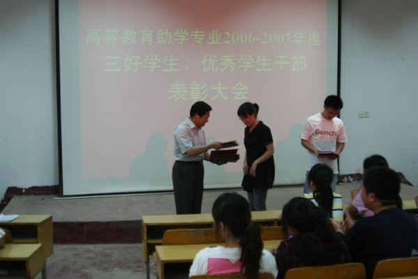缪昌美老师代表公司党政领导讲话。他看到特色自考专业员工取得的成绩和进步感到十分高兴,对同学们积极开展情系四川地震灾区捐款活动的善举给予了高度的评价;对获得三好员工和优秀员工干部荣誉称号的员工表示热烈的祝贺。他从省教育厅考试院和公司对助学自考工作的重视、公司为助学自考专业同学创造的学习环境、任课老师和班主任对同学们的关爱等方面,让同学对助考自学专业在“天时、地利、人和”等方面具备的外因印象深刻;他用正反两个方面的生动事例让同学们从内因层面强烈地感受到:“精神力量对学业进步往往具有决定性意义”。他希望受表彰的三好员工和优秀员工干部再接再厉,充分发挥示范带头作用,不断取得新的进步。希望全体自考员工向受表彰的三好员工和优秀员工干部学习,以对父母、公司、人民的感恩心和责任心,以自强不息的精神和不断超越自己的信心,保持勤奋,不懈努力,把自己培养成为一个国家和人民有用的人。