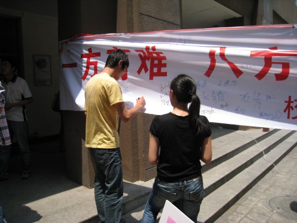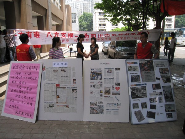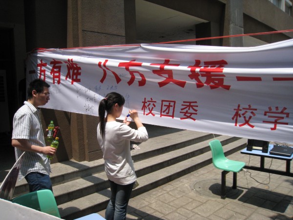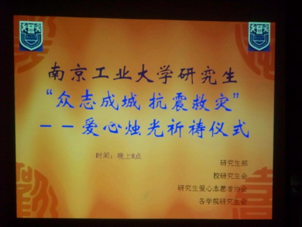 2008年5月18日至19日,由校研究生部、校研究生会联合发起,公司研究生会和校研究生爱心志愿者协会联合承办的“众志成城 ,抗震救灾”--“我们都是汶川人”爱心活动,在丁家桥校区新研楼下成功举行。本次活动受到广大师生的大力支持, 总共征得善款39787.2元, 5月20日以“beat365亚洲体育官方网站全体研究生”的名义直接汇往中国红十字会总会,向四川地震灾区献爱心。